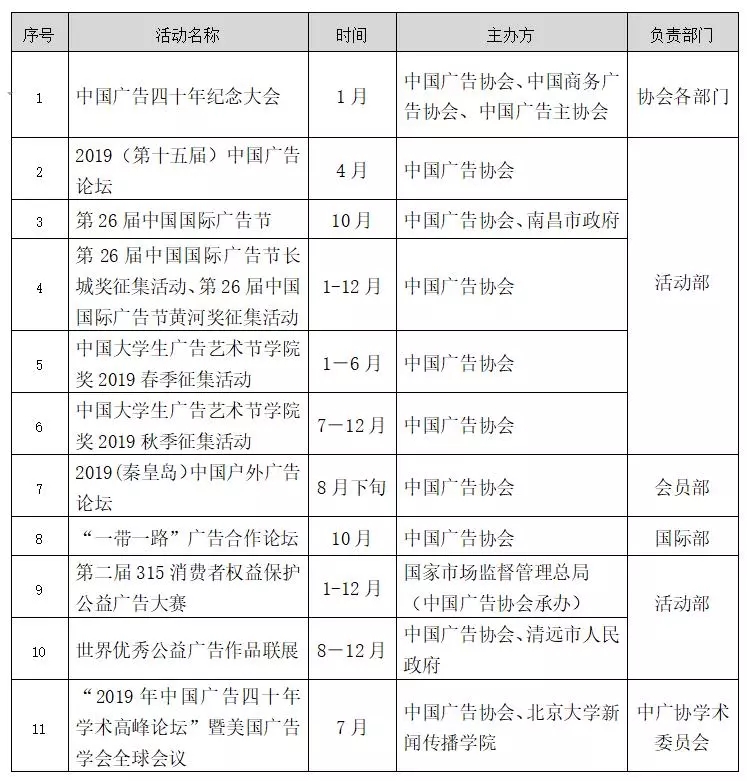 2019年,午夜性影院私人影院将围绕&濒诲辩耻辞;服务行业自律、服务行业维权、服务行业发展&谤诲辩耻辞;履职尽责,充分发挥广告行业组织的桥梁纽带作用,增强服务能力,扩大服务范围,创新服务举措,切实提升会员单位获得感,更好地服务广告行业发展。协会全年重点工作计划如下: